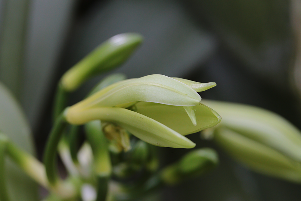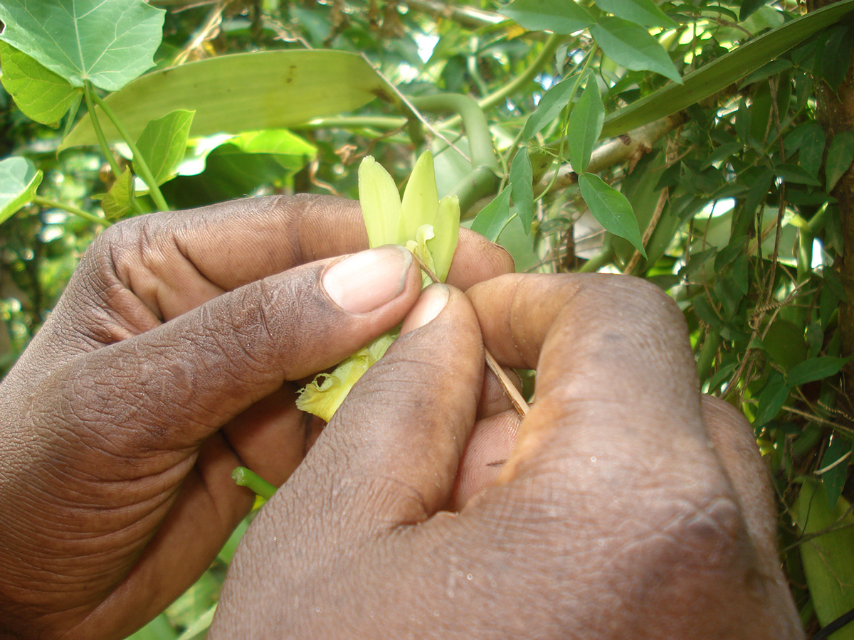 適切なバニラビーンズの木々の管理を怠りません。日々の手入れにより健康なバニラビーンズは育ちます。下の図はバニラビーンズ栽培に重要な受粉の様子です。