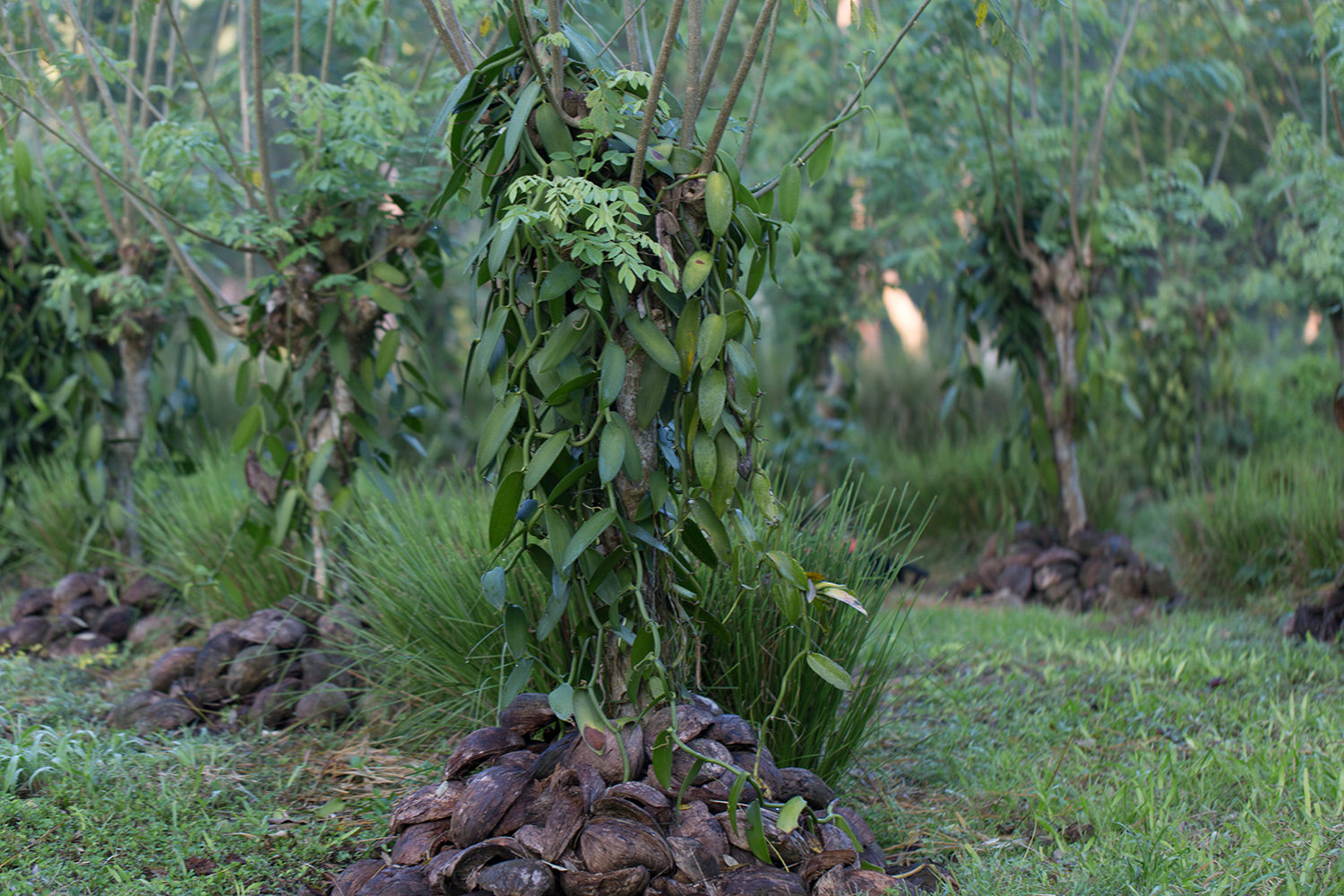 健康的で微生物が多く繁殖している「土」によってはじめて「 良質な農産物 」が生産されます。健康的な「土」の中には、1cm3あたり数億 ~ 十数億もの微生物が多様に活躍しています。微生物の働きにより保水と排水のバランスが良い、豊富な養分を蓄えた土が形成されます。あらゆる植物はこの土から「 養分 」をたっぷり「 吸収 」し健康的に育った産物は「 病害虫 」にも強くなります。「 バニラビーンズ 」でいえば、「十分な養分 」を蓄え、発酵によってもたらされる「 バニラの香り成分・ヴァアニリン 」の元になる糖分( 配糖体 )を多く含みます。「 グリーン・ホワイト・ブラックなどのペッパー 」「 チリペッパー 」「 ココナッツ 」、地中で育つ「 ジンジャー・ターメリック 」においても「 土と微生物 」の存在は極めて重要な役割を担っています。